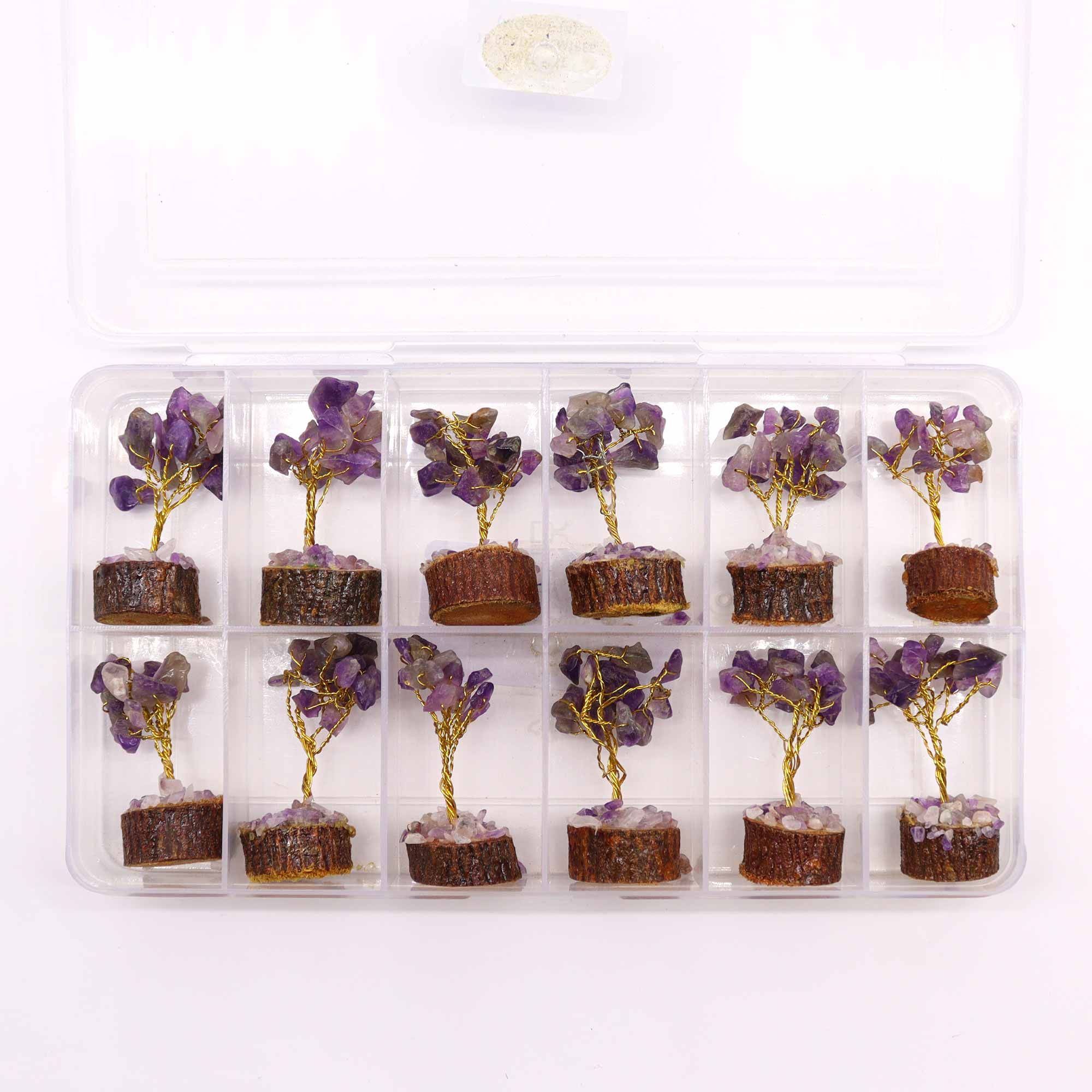Mini Gemstone Tree On Wood Base – Amethyst (15 stones)
