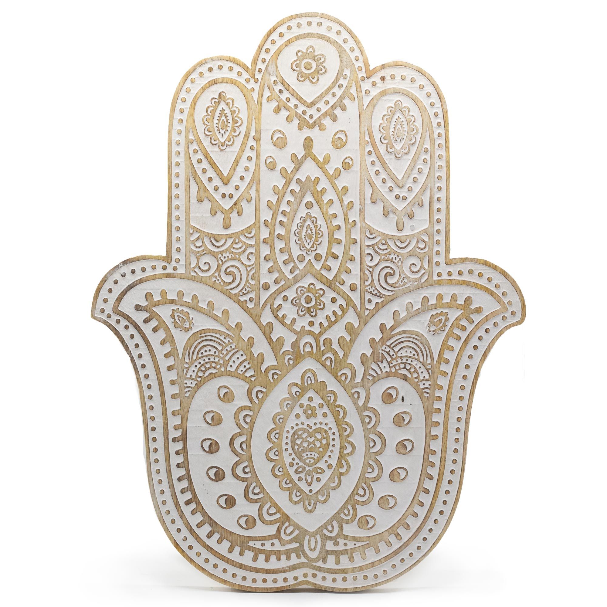 Mango Wood Hamsa Wall Plaque – Whitewash
