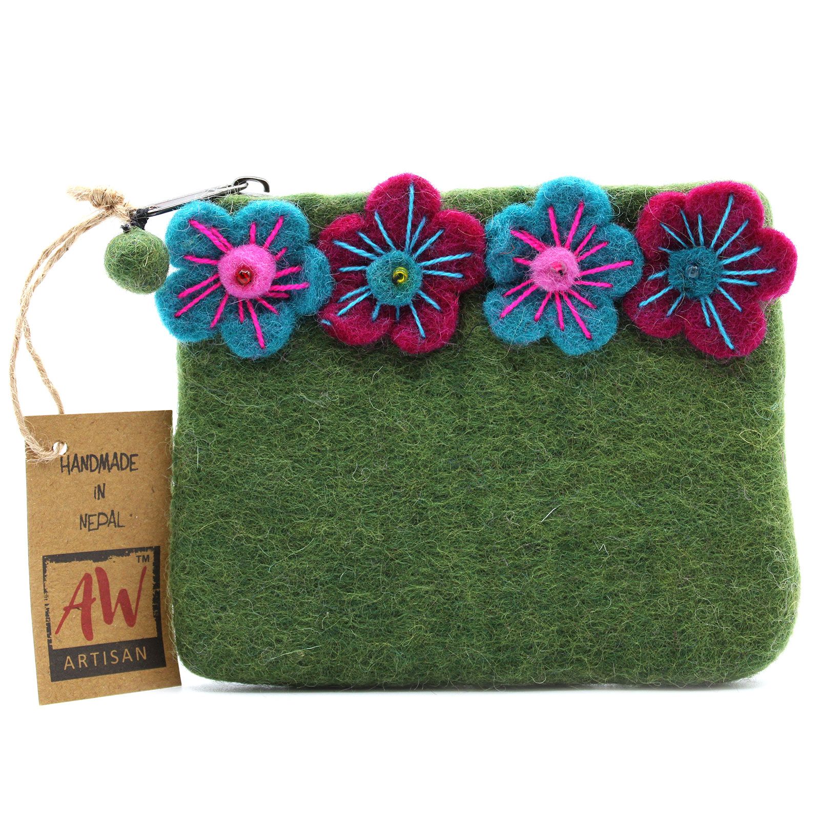 Natural Felt Zipper Pouch (asst) – Four Flowers