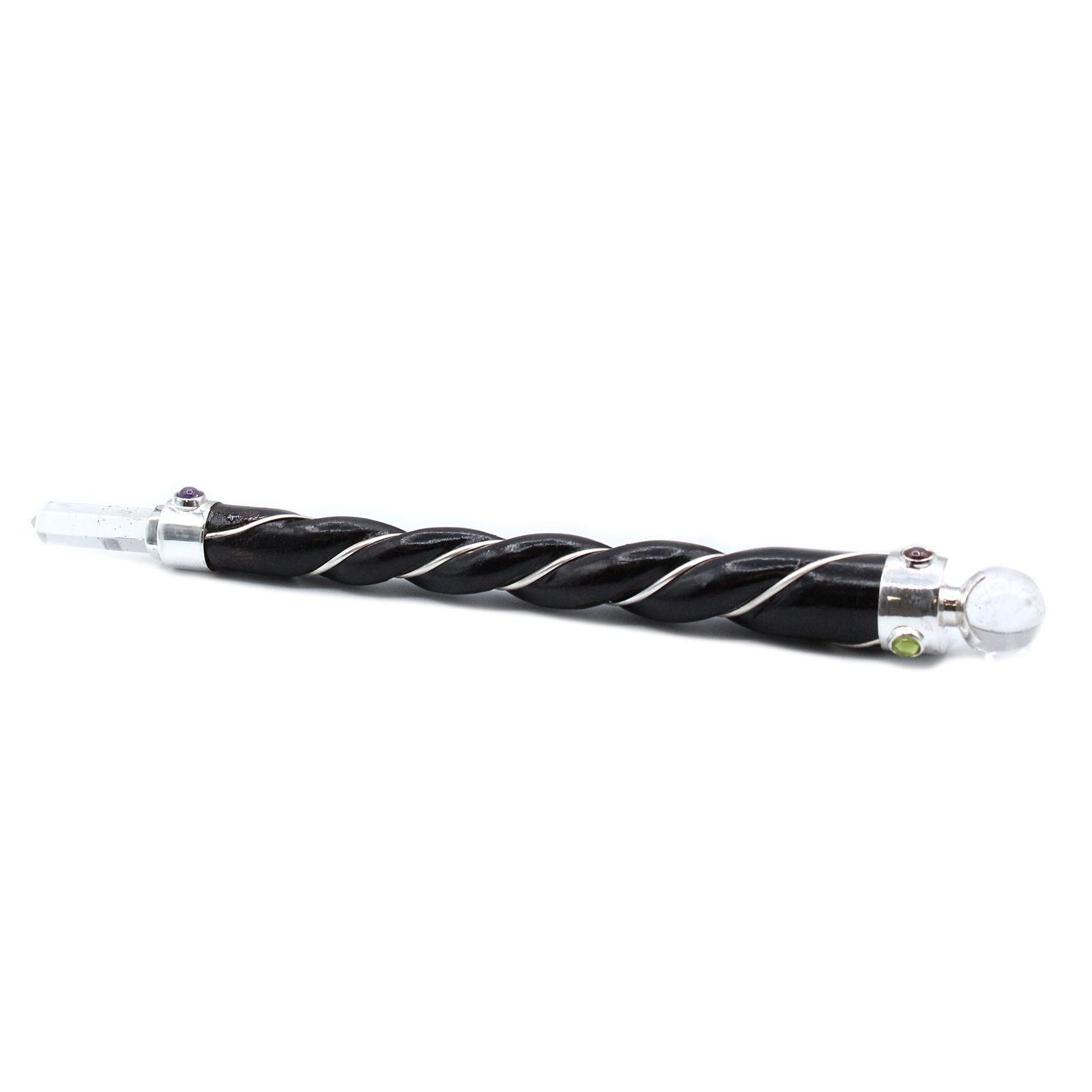 Twisted Healing Wand – Silver Rock Quartz Sphere